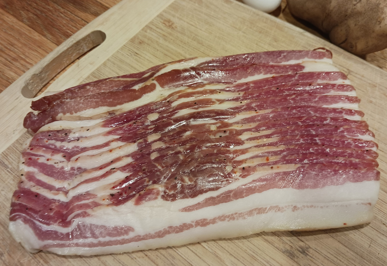 Have you ever wondered about the difference between our exceptional dry-cured bacon and the soggy mass- produced bacon at your nearest supermarket? With this 3 Pack Dry-cured Bacon Sampler gift, you'll get 3 different gourmet bacons that are dry-cured, the old-fashioned way. The dry-cure process is how folks use to enjoy bacon before refrigeration. You will receive Boss Hog Hickory Smoked, a traditional favorite smoked with real hickory chips. Also included are Cajun and Black Pepper Smoked to give you a nice sampling of the classic flavors that enhance the taste of bacon. Dry cured bacon offers a more concentrated flavor and firmer texture. Our new dry cure process leaves a bit more moisture in the belly than before and has a less salty taste. This gourmet bacon bundle makes a great bacon gift for the bacon lover, or yourself.
